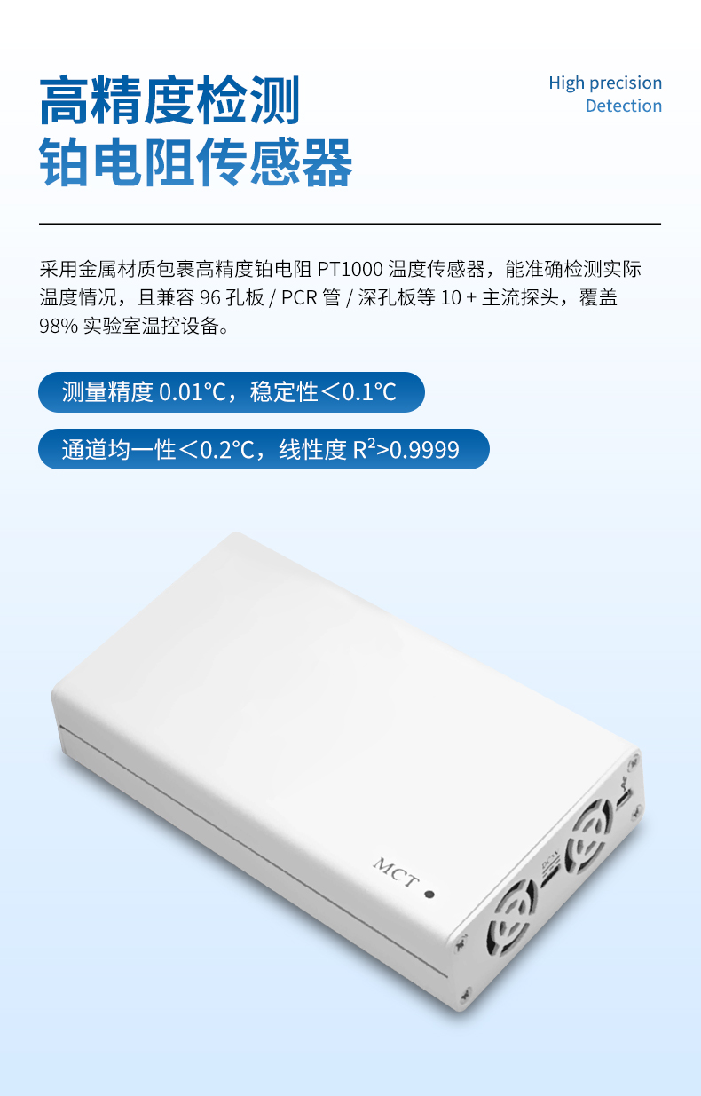 YP-MCT溫度巡檢儀是為實驗室溫控設備和儀器專門設計開發的實時高精度溫度校準檢驗設備。系統采用高精度PT鉑電阻溫度傳感器,配合高線性,高響應速度以及低溫漂的信號采集系統,能實時對PCR分析儀,水浴鍋,培養箱等設備的溫度控制精度,均一性,穩定性以及升降溫速度進行監控,是實驗室控溫設備的理想檢測工具。