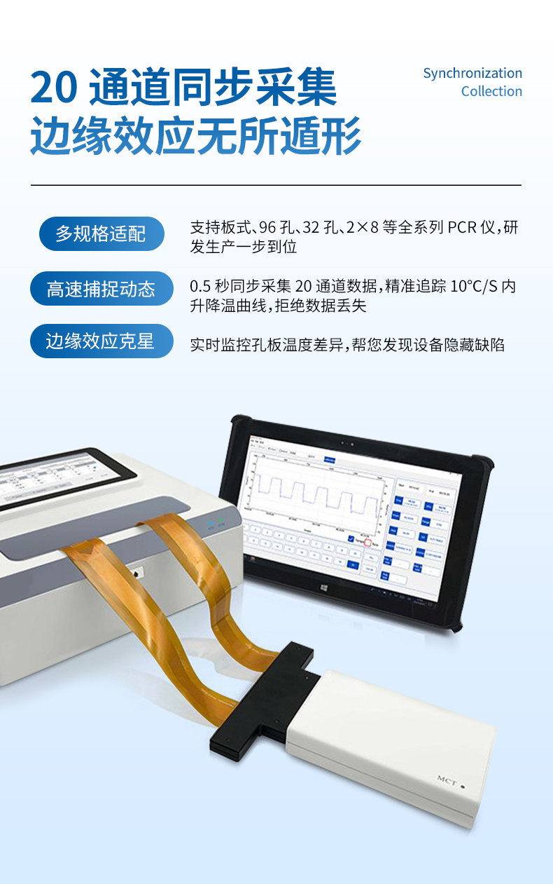 2.20通道溫度可同步采集,滿足PCR儀孔間溫度偏差的檢測,有效監控孔板的溫度邊緣效應l 良好的溫度精確度,均一性和穩定性,適應大部分實驗室溫控設備的檢測需求