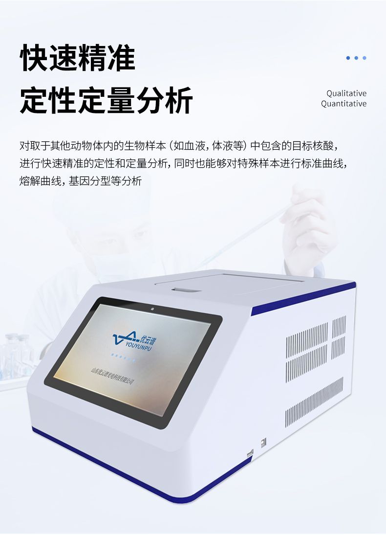 對取于其他動物體內的生物樣本(如血液,體液等)中包含的目標核酸,進行快速精準的定性和定量分析,同時也能夠對特殊樣本進行標準曲線,熔解曲線,基因分型等分析。