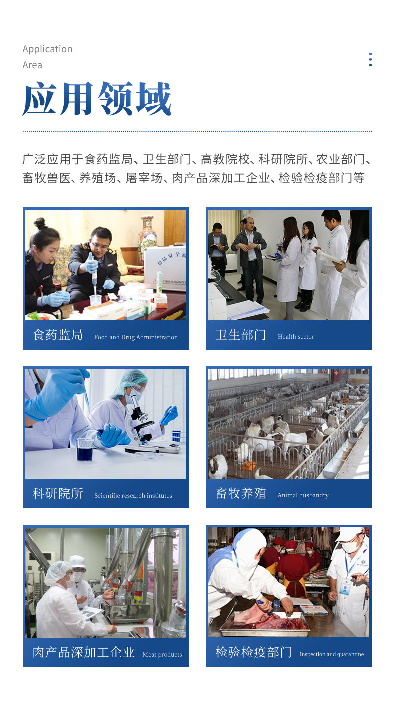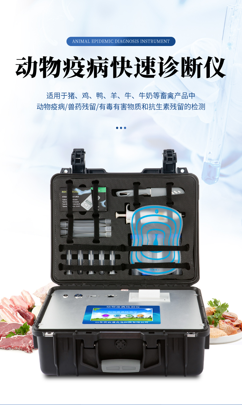 該動物疫病診斷儀適用于豬、雞、鴨、羊、牛、牛奶等畜禽產品中動物疫病、獸藥殘留、有毒有害物質和抗生素殘留的檢測可廣泛應用于食藥監局、衛生部門、高教院校、科研院所、農業部門、畜牧獸醫、養殖場、屠宰場、食品肉產品深加工企業、檢驗檢疫部門等單位使用。