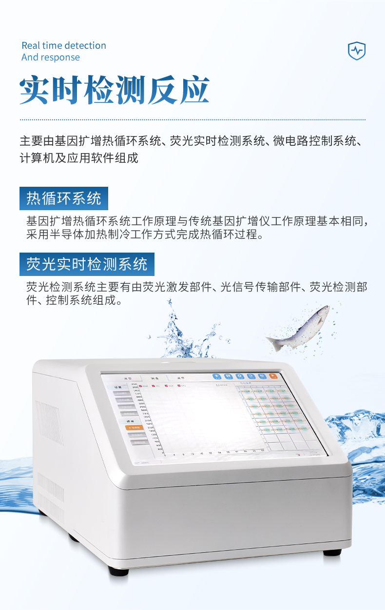 我公司研發(fā)的魚(yú)蝦病毒檢測(cè)儀采用實(shí)時(shí)定量聚合酶鏈?zhǔn)椒磻?yīng)(qPCR)技術(shù),是一種常用的分子生物學(xué)技術(shù),用于檢測(cè)水產(chǎn)養(yǎng)殖中的病毒。PCR檢測(cè)儀可以擴(kuò)增和檢測(cè)特定病毒的核酸序列,從而確定是否感染了特定的魚(yú)類(lèi)或蝦類(lèi)病毒。