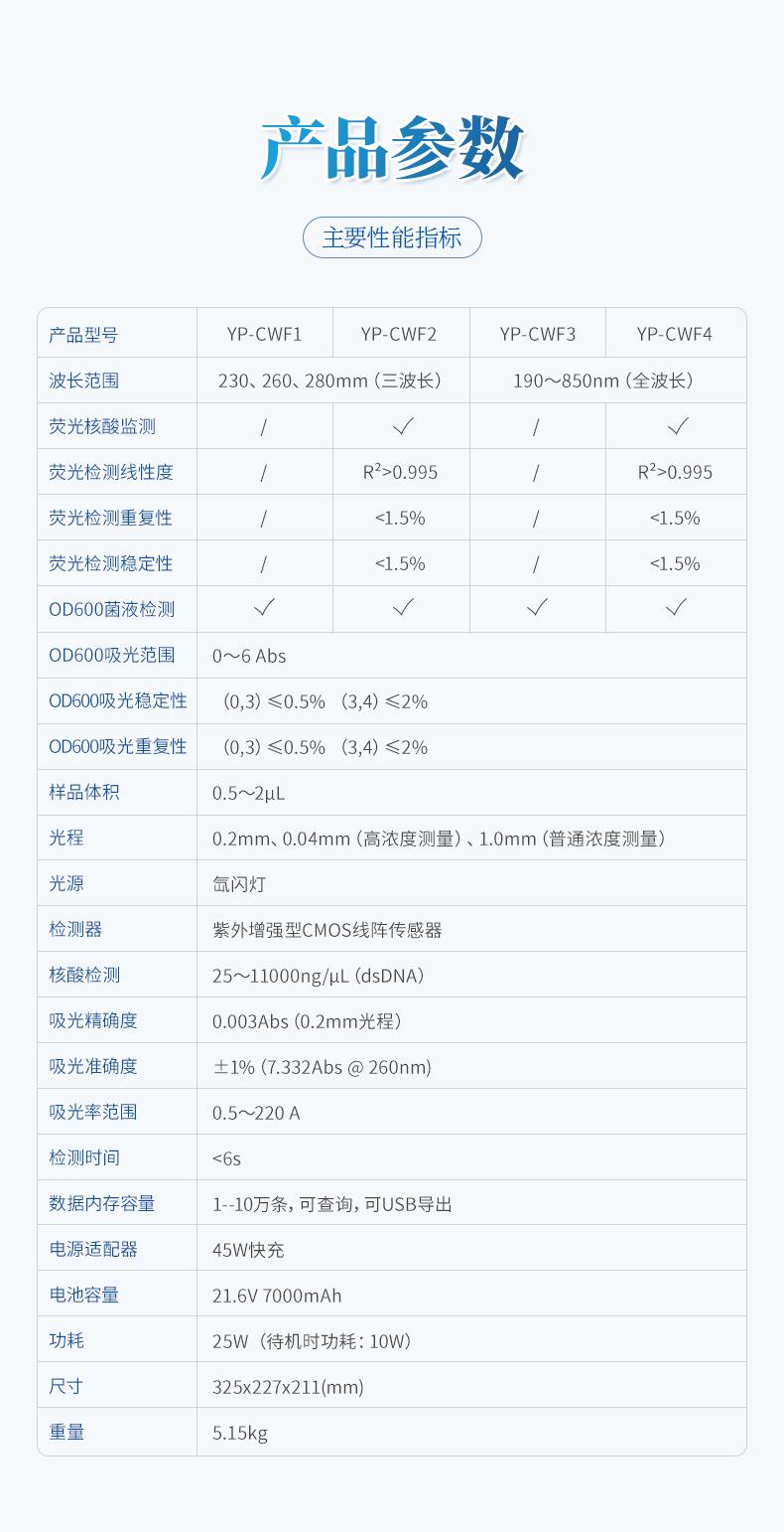 8、吸光準確度:±1%(7.332Abs @ 260nm)