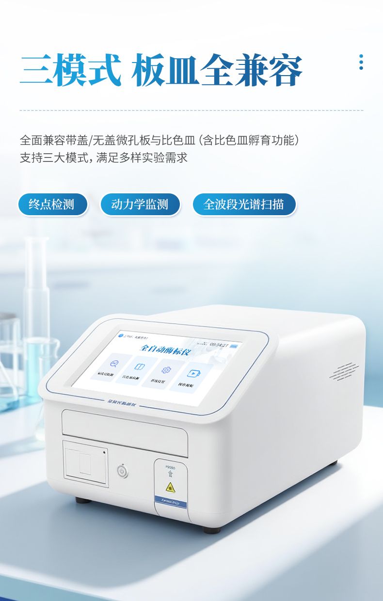 8. 支持終點檢測、動力學監測、全波段光譜掃描三大模式,兼容帶蓋/無蓋微孔板及比色皿(含比色皿孵育功能);