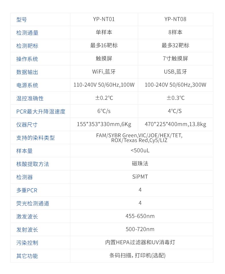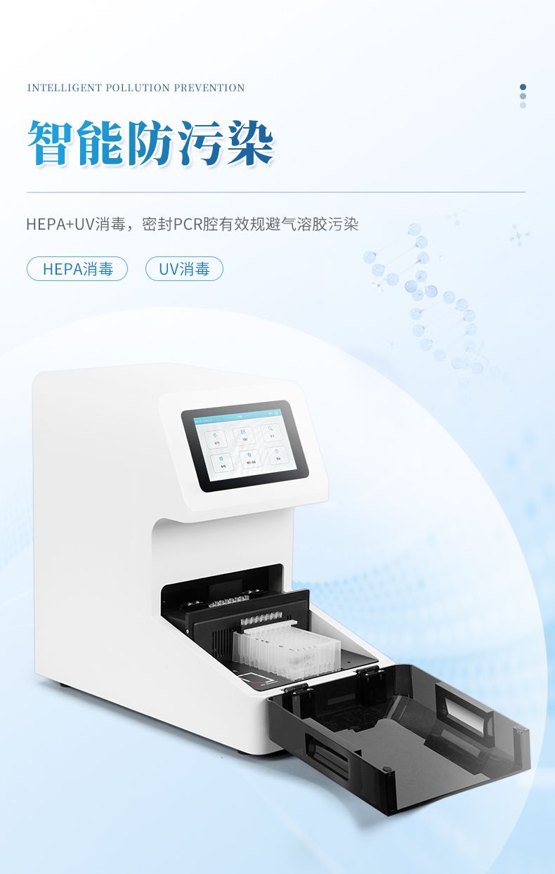全自動核酸擴增快檢設備,集核酸提取、PCR擴增以及熒光檢測于一體,在密閉的環(huán) 境中進行核酸的提取及擴增。操作簡單,一次實驗 支持一人份最多16靶標的檢測。基于磁珠法的核提方式,兼容多種試劑體系。速度快,體積小,無需轉管,小體量即可實現(xiàn)樣本進、結果出的全實驗流 程。應用場景廣泛,需要多樣本檢測時可以并行多 臺設備,使用靈活方便。