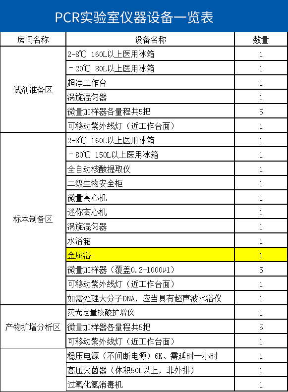 二級醫(yī)院核酸檢測實驗室設(shè)備清單