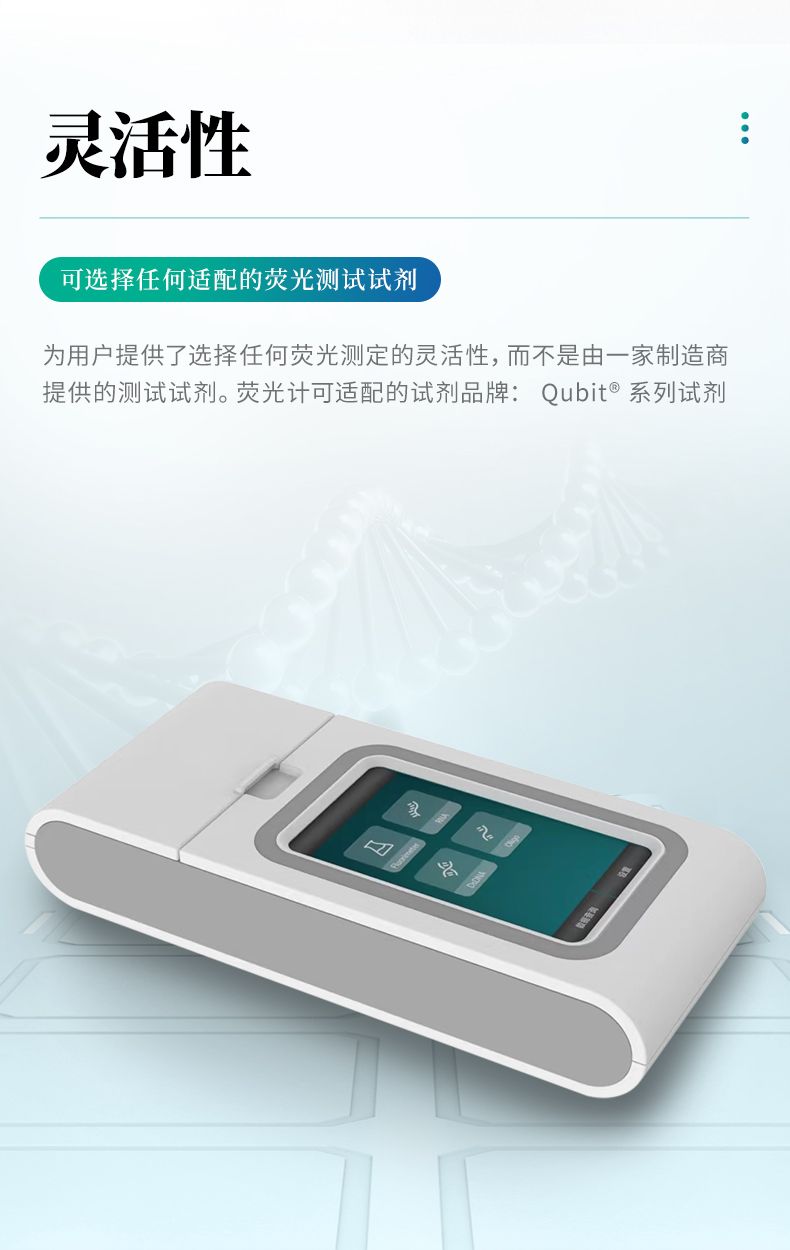 靈活性---為用戶提供了選擇任何熒光測定的靈活性,而不是由一家制造商提供的測試試劑。熒光計可適配的試劑品牌:Qubit?系列試劑.